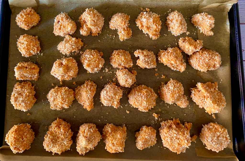 - Once the floret is dipped into the batter immediately roll the cauliflower floret into the panko bread crumbs, once again make sure the entire surface area is covered in panko breads. (This step can be omitted for gluten-free version but wings will be much crispier and flavorful with panko coating).
